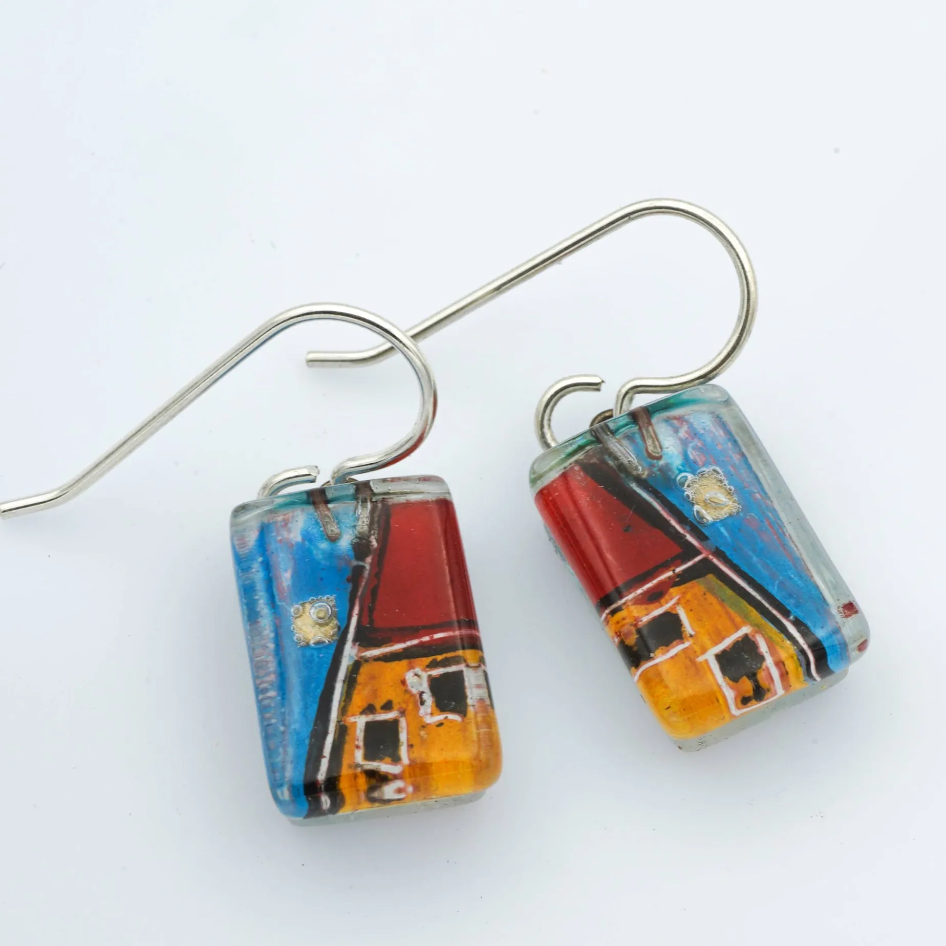 Künsthaus is part of the CONSTRUCTS collection. It reminds us of a trip we took to Vienna, and of some of Vienna’s masters: Klimt, Schiele and Hundertwasser. The ear wires are argentium silver (nickel-free, slow tarnish) and come with silicone ear backs included.(please note that slight variations from the photographed item are inevitable due to the nature of this work — each design is hand-painted)