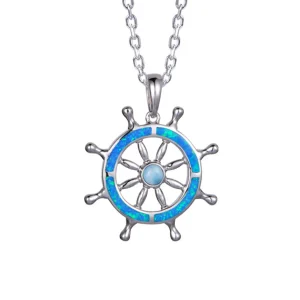 Opal and Sterling Silver Fish Hook Pendant Necklace