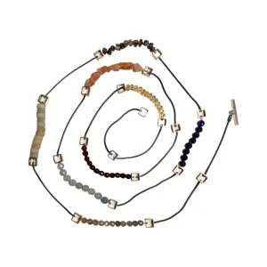 Multi Squares Chain Necklace, sterling silver with semiprecious beads.
