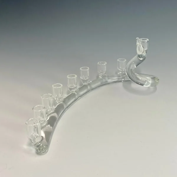 With their distinctive, functional designs they are popular among collectors and as gifts for newlyweds any time of year. Because they work exclusively with heat-resistant glass, candles can burn down completely without harming this heirloom-quality artwork. All menorahs come with a descriptive tag that includes care instructions.